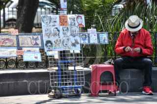 CIUDAD DE MÉXICO, 30MARZO2024.- Un caricaturista afila uno de sus lápices de Dibujo en las inmediaciones del Parque de la Alameda de Santa María La Ribera. FOTO: MARIO JASSO/CUARTOSCURO.COM