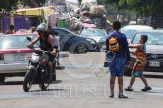 CIUDAD DE MÉXICO, 30MARZO2024.- Vecinos de la colonia Morelos se mojan este sábado de gloria a pesar de las multas por el desperdicio de agua en la capital. FOTO: ROGELIO MORALES/CUARTOSCURO.COM