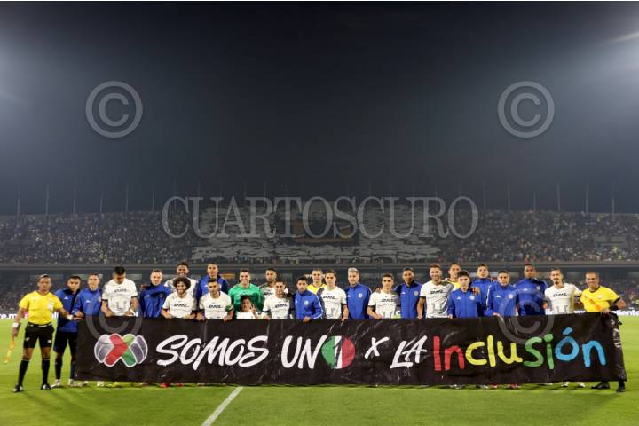 CIUDAD DE MÉXICO, 30MARZO2024. Mensaje por la inclusión precio al partido de fútbol Pumas vs Cruz Azul correspondiente a la jornada 13 del Torneo Clausura 2024 de Liga BBVA MX, en el Estadio Olímpico Universitario. FOTO: EDGAR NEGRETE LIRA/CUARTOSCURO.COM