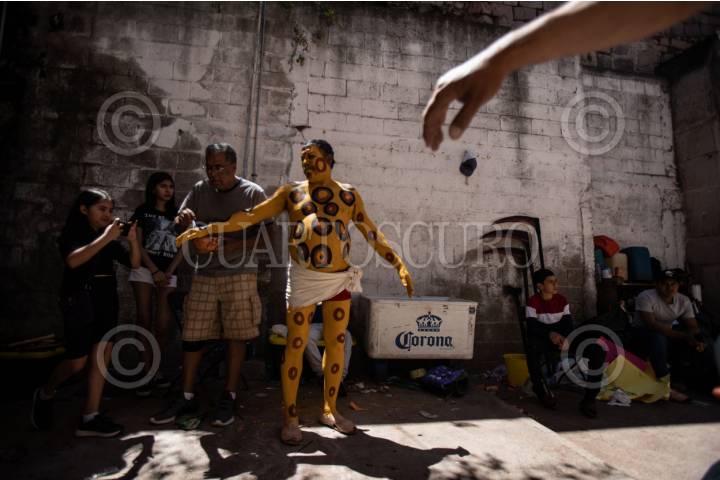 HUEJUQUILLA EL ALTO, JALISCO, 31MARZO2024.- Antes de emprender la subida a la Sierra Wixárika, en el inicio de la Sierra Madre Occidental, se juntan los estados de Jalisco, Zacatecas, Nayarit y Durango; aqui tiene cabida "La Judea", sin Cristo ni cruz, sólo “borrados”, hombres que pintan todo su cuerpo, eliminando su personalidad, y representan a los judíos. Esta Judea tiene elementos de distintas culturas, en que se mezclan, por supuesto, la tradición católica, la penitencia pública y las creencias de los pueblos originarios, en particular la wixárika y tepehua. Todo el pueblo y el turismo se reúne en el centro del pueblo para presenciar y recibir, uno que otro chicotazo, sus tradiciones y que año con año se dan cita disfrazados para llevar a cabo la celebración. La fiesta principal se ralizá el viernes santo, los borrados inician el acto saliendo a la plaza principal corriendo con enormes sombreros de cartulina multicolor. Son los judíos, quienes con algarabía van “agarrando” a la gente para pedir una cooperación para la fiesta, todo bajo el control de los "cueros de cochino", otros borrados con máscara de tapir armados con un chirrión. Ahí comienzan los enfrentamientos, la gente participa en ellos, protegida por chamarras gruesas y sombreros de petate con cuero, desafían, “torean” a los borrados, nada más con un palo para defenderse de los chicotazos, representando un acto sobre la búsqueda de redención y castigo, que ejercen los látigos sobre la piel. A medio día se liberan los barrabases, personajes principales de esta historia sagrada y profana. Después de purificarse revolviéndose en jarales, se arman de látigos y, al igual que los Cueros de cochinos, son toreados por los asistentes, en la plaza principal para luego caminar, en procesión, a varios lugares del pueblo, lanzándose naranjas en un torbellino creciente de euforia y violencia. Todos estos personajes envalentonados por el tepe, bebida tradicional del lugar, un destilado de agave con peyote. En medio de toda la fiesta ronda la muerte, delgados jóvenes disfrazados, que corren durante toda la ceremonia y tocan a los asistentes como una huella de mal augurio con sus dedos pintados de negro. Poco a poco todo el pueblo es una gran fiesta de latigazos y risas. Este teatro tradicional se termina el sábado con la quema de los judas. Esta Judea es sin viacrucis ni Cristo, acá la lucha entre bien y mal se resuelve sin el redentor. FOTO: ADOLFO VLADIMIR /CUARTOSCURO.COM