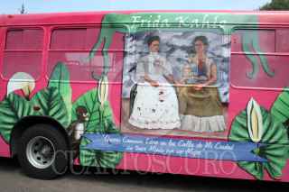 MÉXICO, D.F., 06JULIO2007.- "Las dos Fridas", pintura de la artista Frida Kalho, adorna uno de los dos Metrobus conmemorativos por el aniversario del nacimiento de la pintora mexicana, los cuales recorreran la avenida Insurgentes de norte a sur. FOTO: ISAAC ESQUIVEL/CUARTOSCURO.COM