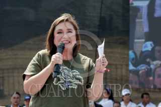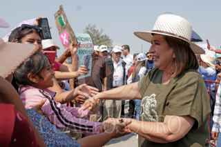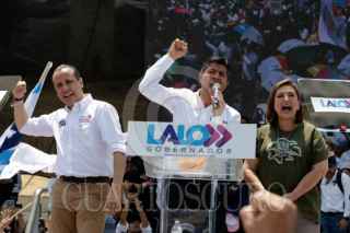 PUEBLA, PUEBLA, 31MARZO2024.- Mario Riestra, candidato a la presidencia municipal de Puebla; Eduardo Rivera, candidato a la gubernatura de Puebla, y Xóchitl Gálvez, candidata a la Presidencia de la República, todos por la coalición "Fuerza y Corazón por México", durante el arranque de campaña de los candidatos locales en el estado de Puebla realizada en la Plaza de la Victoria. FOTO: MIREYA NOVO/ CUARTOSCURO.COM