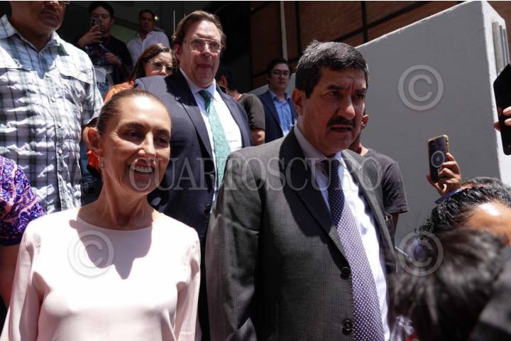 CIUDAD DE MÉXICO, 01ABRIL2024.- Claudia Sheinbaum, candidata a la presidencia por Morena, y Javier Corral, ex gobernador de Chihuahua, durante su salida a la presentación de Eje Temático Fortalecimiento de la Democracia y Gobierno Honesto en el Centro Cultural Estación Indianilla. FOTO: GRACIELA LÓPEZ /CUARTOSCURO.COM