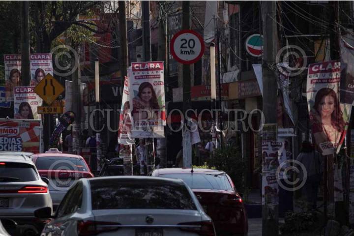 CIUDAD DE MÉXICO, 01ABRIL2024.- Lonetas del rostro de Clara Brugada, candidata a la Jefatura de Gobierno, se encuentran en cada poste de Avenida Rojo Gómez, en la alcaldía Iztapalapa. FOTO: GRACIELA LÓPEZ /CUARTOSCURO.COM