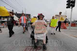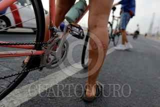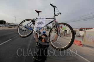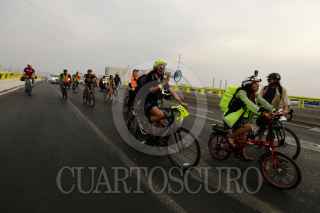 QUERÉTARO, QUERÉTARO, 01ABRIL2024.- La Unión de Asociaciones Ciclistas de Querétaro junto a representantes de diversos colectivos de personas con discapacidad, peatones y usuarios de transporte público, realizaron una manifestación en Paseo 5 de Febrero, para exigir, mediante una ciclovía humana, una caminata y una rodada, que se consideren en la mega obra (que todavía no concluye su construcción y en la que se invirtieron más de 6 mil millones de pesos) las condiciones para una movilidad sustentable y que no se prioricen solo a los usuarios del automóvil. FOTO: CÉSAR GÓMEZ/CUARTOSCURO.COM
