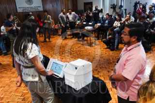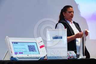 CIUDAD DE MÉXICO, 02ABRIL2024.- Se llevó acabo la presentación del funcionamiento de las urnas electrónicas v.7.0 que se usarán en las 44 casillas especiales a instalarse en la CDMX el próximo 2 de junio. Esto en Sala de Sesiones de la 06 Junta Distrital Ejecutiva FOTOS: ROGELIO MORALES /CUARTOSCURO.COM
