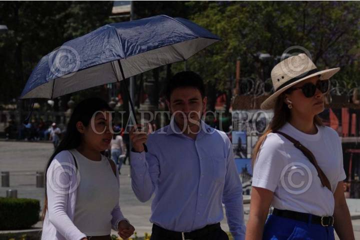 CIUDAD DE MÉXICO, 02ABRIL2024.- Jóvenes se cubren de los rayos del sol con paraguas y sombrero. Esta tarde se encuentra activa la Alerta Naranja y Alerta Amarilla por temperaturas altas en la capital. FOTO: GRACIELA LÓPEZ /CUARTOSCURO.COM
