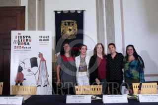 CIUDAD DE MÉXICO, 02ABRIL2024.- Socorro Venegas, directora general de publicaciones y fomento editorial de la UNAM; Julia Santibáñez, directora de literatura y fomento a la lectura de la UNAM; Rosa Beltrán, coordinadora de Cultura UNAM; Imelda Martorell, titular ejecutiva de Universo de Letras de la UNAM, y Claudina Domingo, cuidado editorial de la Revista de la Universidad de México, durante la conferencia de prensa de la Fiesta del Libro y la Rosa UNAM 2024 que se realizará del 19 al 21 de abril en el Centro Cultural Universitario. Durante estos días, la Fiesta tendrá alrededor de 500 actividades y recibirá a 110 expositores que presentarán la oferta de 500 sellos editoriales con alrededor de 150 mil ejemplares. FOTO: MOISÉS PABLO/CUARTOSCURO.COM