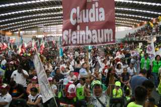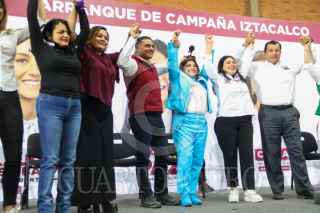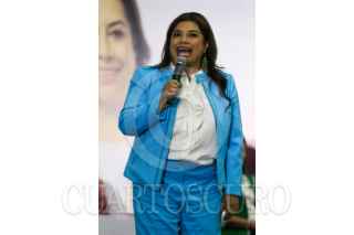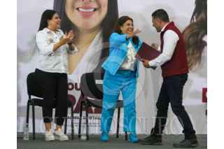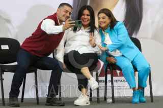 CIUDAD DE MÉXICO. 02ABRIL2024.- Lourdes Paz, candidata a la alcaldía de Iztacalco, inicio su proselitismo acompañada de la aspirante de Morena a la jefatura del Gobierno, Clara Brugada y Omar García Harfuch, en la plaza de armas de la Magdalena Mixhuca. FOTO: VICTORIA VALTIERRA/CUARTOSCURO.COM