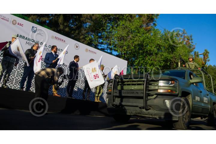 CIUDAD DE MÉXICO. 03ABRIL2024.- El jefe del Gobierno de la Capital, Martí Batres Guadarrama, acompañado de Pablo Vázquez director de la SSC y el Fiscal encargado Ulises Lara, en la puesta en marcha del operativo Miguel Hidalgo que inicia este día en toda la alcaldía panista. FOTO: VICTORIA VALTIERRA/CUARTOSCURO.COM