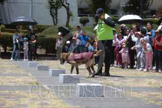 TOLUCA, ESTADO DE MÉXICO, 03ABRIL2024.- Da inicio el Festival Infantil FestínArte 2024 Los caminos del Arte, en el Centro Cultural Mexiquense en la ciudad de Toluca, ofreciendo una gran variedad de actividades para los asistentes, como talleres de monotipia botánica, instrumentos y figuras prehispánicas, marionetas, papalotes, obras de teatro, música, protección de películas en la Cineteca Mexiquense, así como este día una demostración de los binomios caninos de la Secretaría de Seguridad estatal. FOTO: CRISANTA ESPINOSA AGUILAR /CUARTOSCURO.COM