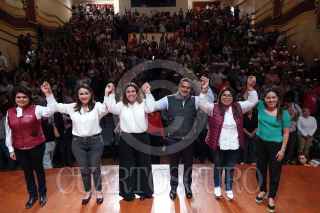 CIUDAD DE MÉXICO, 03ABRIL2024.- Caty Monreal, candidata a la alcaldía Cuauhtémoc, y Omar García Harfuch, candidato a senador, encabezaron una Asamblea con vecinos de esta demarcación en la Plaza Renato Leduc. FOTO: GRACIELA LÓPEZ /CUARTOSCURO.COM