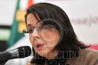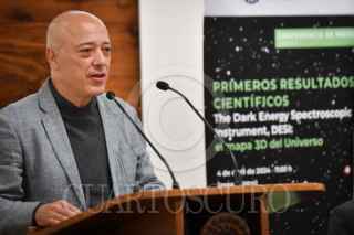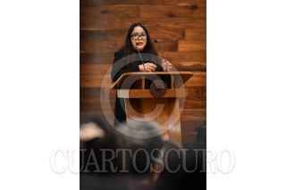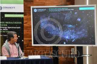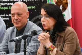 CIUDAD DE MÉXICO, 04ABRIL2024.- María Elena Álvarez-Buylla, directora general del Consejo Nacional de Humanidades, Ciencias y Tecnologías (CONAHCYT), durante su participación en la conferencia de prensa en la que se presentaron los primeros resultados científicos del proyecto "The Dark Energy Spectroscopic Instrument (DESI): el mapa 3D del Universo”, en materia de observaciones cosmológicas hechas en las primeras seis millones de galaxias en mapa tridimensional. FOTO: MARIO JASSO/CUARTOSCURO.COM