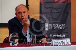 CIUDAD DE MÉXICO, 04ABRIL2024.- Sergio Aguayo, académico, investigador y Rubén Moreira, diputado, encabezaron el Seminario Diálogo Sobre la Seguridad 2024-2030 con el tema del Proyecto de Seguridad de la candidata: Xóchitl Gálvez, esto en el auditorio del Colegio México. FOTOS: ROGELIO MORALES /CUARTOSCURO.COM