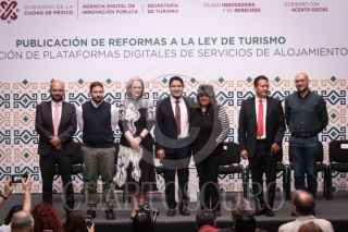 CIUDAD DE MÉXICO, 04ABRIL2024.- Martí Batres Guadarrama, jefe de gobierno de la Ciudad acompañado de funcionarios encabezó la presenración de la Ley de Turismo Regulación de Plataformas Digitales de Servicios de Alojamiento. Que se llevó a cabo en el antiguo palacio de Ayuntamiento y busca evitar la gentrificación. FOTO: ANDREA MURCIA /CUARTOSCURO.COM