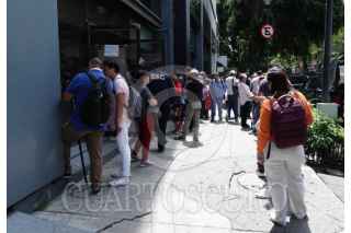 CIUDAD DE MÉXICO, 04ABRIL2024.- El furor por el eclipse de sol del próximo lunes 08 de abril ha lanzado a los capitalinos a buscar filtros especial para poder apreciarlo. Una larga fila de personas se observó en las inmediaciones de la Secretaria de Seguridad Ciudadana (SSC) para adquirir los lentes especiales para su observación directa. Los anteojos fueron diseñados por internas del penal de Santa Martha Acatitla y ensamblados en el Reclusorio Oriente como parte del programa Hazme Valer. FOTO: GALO CAÑAS/CUARTOSCURO.COM