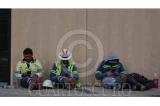 CIUDAD DE MÉXICO, 04ABRIL2024.- Trabajadores de obras toman un descanso en Avenida Bucareli, en el Centro Histórico. FOTO: GRACIELA LÓPEZ /CUARTOSCURO.COM