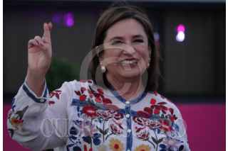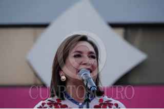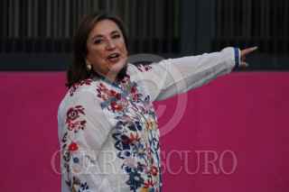 CIUDAD DE MÉXICO, 06ABRIL2024.- Xóchitl Gálvez, candidata a la presidencia de la República por la coalición Fuerza y Corazón por México (PAN-PRI-PRD) acudió a las inmediaciones del Instituto Nacional Electoral (INE) cómo parte del ensayo previo al primer debate presidencial el día de mañana en dicha sede. FOTO: GALO CAÑAS/CUARTOSCURO.COM