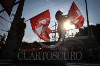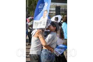 CIUDAD DE MÉXICO, 06ABRIL2024.- Una pareja se besa mientras sostiene propaganda electoral de Isaúl Moreno, candado a diputado federal, durante el inicio de campaña de Rocío Barrera, candidata a la alcaldía de Venustiano Carranza en las inmediaciones del Parque Lineal Ave Fénix. FOTO: MARIO JASSO/CUARTOSCURO.COM