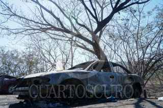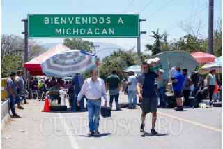 COAHUAYANA, MICHOACÁN, 06ABRIL2024. Habitantes del municipio de Coahuayana realizaron un bloqueo carretero intermitente en el puente que limita Michoacán con Colima para manifestarse por la falta de seguridad, luego de que este martes hubo una incursición por parte del Cartel Jalisco Nueva Generación, que extraoficialmente dejó un saldo de un muerto y nueve heridos. Además, reportaron el uso de drones lanza bombas explosivas de C4 y productos químicos asfixiantes. FOTO: JUAN JOSÉ ESTRADA SERAFÍN /CUARTOSCURO.COM
