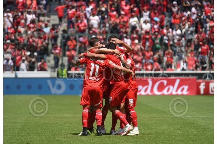 TOLUCA, ESTADO DE MÉXICO, 07ABRIL2024.- jugadores de los Diablos de Toluca festejan la victoria ante la escuadra rojinegra del Atlas, como parte de la jornada 14 del Torneo Clausura 2024 de la Liga MX, con un marcador final 4-1. FOTO: CRISANTA ESPINOSA AGUILAR /CUARTOSCURO.COM