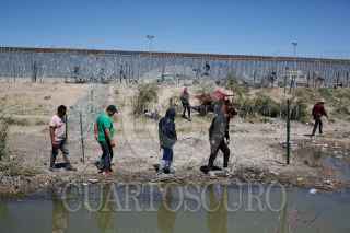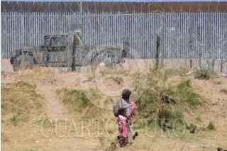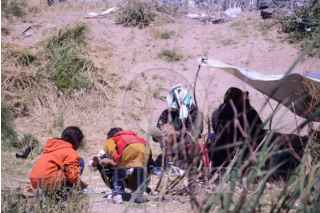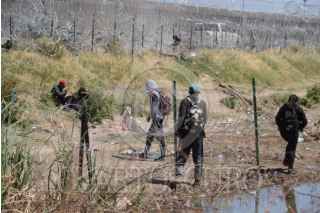 CIUDAD JUÁREZ, CHIHUAHUA, 07ABRIL2024.- Continúa el arribo de migrantes al Río Bravo en sus márgenes se pueden observar sus improvisados campamentos. Ante esta situación autoridades estadounidenses han reforzado con más alambradas de púas como en la puerta 36, por este motivo los caminantes se trasladado a la puerta 35. FOTO: REY R. JAUREGUI/CUARTO OSCURO.COM