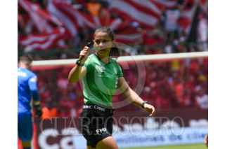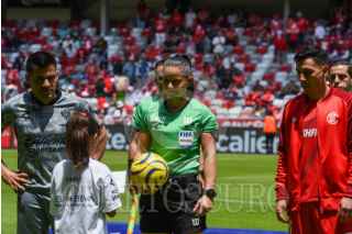 TOLUCA, ESTADO DE MÉXICO, 07ABRIL2024.- La silbante Karen Hernández fungió como árbitro central en el encuentro entre Diablos de Toluca y Atlas, en la jornada 14 del Torneo Clausura 2024 en el estadio Nemesio Diez. FOTO: CRISANTA ESPINOSA AGUILAR /CUARTOSCURO.COM
