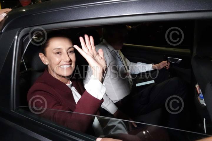 CIUDAD DE MÉXICO, 07ABRIL2024.- Claudia Sheinbaum, candidata a la presidencia por Morena, durante su salida del primer debate presidencial en las instalaciones del Instituto Nacional Electoral. FOTO: GRACIELA LÓPEZ /CUARTOSCURO.COM