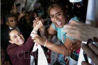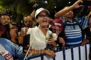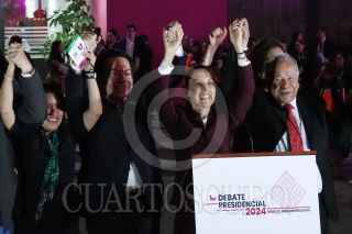 CIUDAD DE MÉXICO, 07ABRIL2024.- Gaby Osorio, candidata a la alcaldía de Tlalpan, durante la salida de Claudia Sheinbaum, candidata a la presidencia por Morena, en el primer debate presidencial en las instalaciones del Instituto Nacional Electoral. FOTO: GRACIELA LÓPEZ /CUARTOSCURO.COM