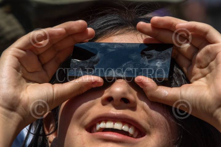CIUDAD DE MÉXICO, 08ABRIL2024.- Gran espectacion a causado el eclipse solar en la Ciudad de México. Personas se reunieron en la explanada del Universum en Ciudad Universitaria para ver este fenómeno astronómico, se cancela que pasada las doce la luna oculte más del 70% la circunferencia del sol. FOTO: MOISÉS PABLO/CUARTOSCURO.COM