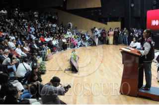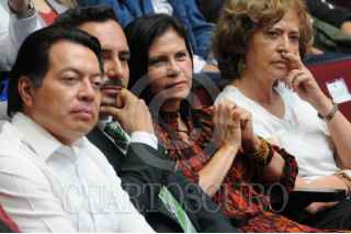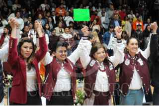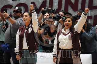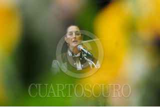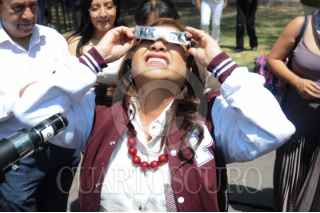 CIUDAD DE MÉXICO, 08ABRIL2024.- Clara Brugada, candidata de Morena a la jefatura de gobierno, observa con ayuda de unos lentes especiales, el avance del eclipse solar. FOTO: DANIEL AUGUSTO /CUARTOSCURO.COM
