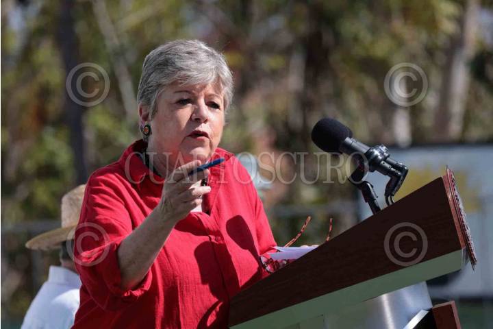 MAZATLÁN, SINALOA, 08ABRIL2024.- Alicia Bárcena Ibarra, secretaria de Relaciones Exteriores (SRE), durante la mañanera en Mazatlán en donde dio detalles de la ruptura diplomática entre México y Ecuador, luego de que este último allanará el consulado mexicano. PRESIDENCIA/CUARTOSCURO.COM