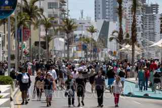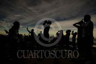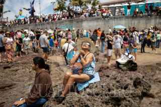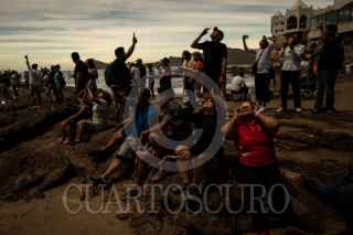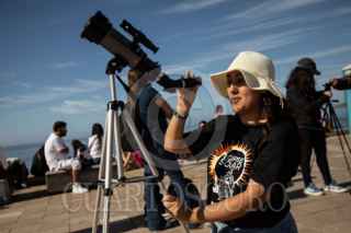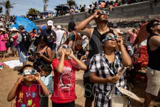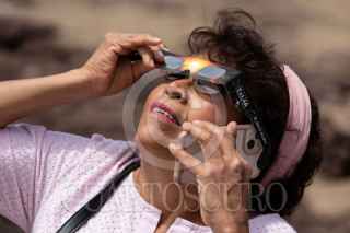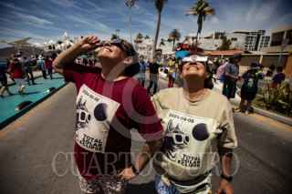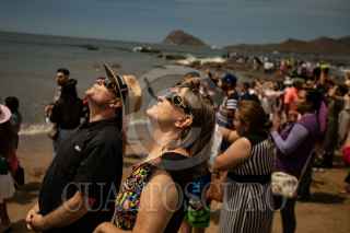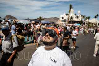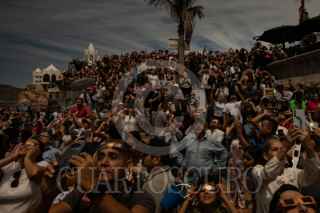 MAZATLÁN, SINALOA, 08ABRIL2024.- Miles de personas disfrutaron del eclipse total de sol sobre la Av. del Mar y esquina con Av. Rafael Buelna, en el malecón de Mazatlán. Las calles y playas se mostraron abarrotadas por turismo de varios estados del país y extranjeros, quienes estuvieron desde el comienzo hasta el final del fenómeno astronómico. FOTO: ADOLFO VLADIMIR /CUARTOSCURO.COM