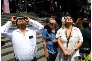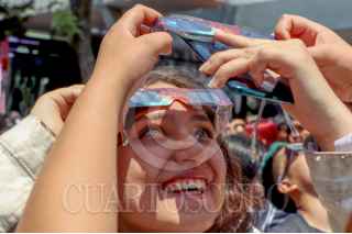 CIUDAD DE MÉXICO, 08ABRIL2024.- La comunidad estudiantil de la Escuela Nacional Preparatoria #8 Miguel E. Schulz apoyados por académicos del plantel observaron el eclipse solar. FOTO: ADRIANA ALAVAREZ/CUARTOSCURO.COM