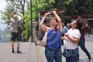 XALAPA, VERACRUZ, 08ABRIL2024.- Xalapeños salieron a observar el eclipse solar, que en esta zona fue parcial. Hubo a quienes el filtro se les quemó, lo que alarmó a las personas quienes tomaron más precaución a la hora de observar. FOTO: YERANIA ROLÓN/CUARTOSCURO.COM