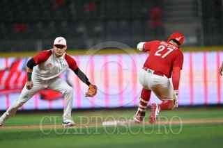 CIUDAD DE MÉXICO, 08ABRIL2024.- Con cuatro carreras en la primera entrada, la ofensiva de los Diablos Rojos del México puso una diferencia inalcanzable para El Águila de Veracruz y apoyada en una gran actuación de su pitcheo, la ‘Pandilla Escarlata’ venció 6-1 a la escuadra porteña, en juego del Torneo Interliga que se desarrolló en el Estadio Alfredo Harp Helú. Los Diablos hicieron desfilar a 10 bateadores en una primera tanda en la timbraron en cuatro ocasiones. FOTO: DIABLOS ROJOS DEL MÉXICO/CUARTOSCURO.COM