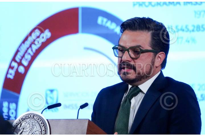 CIUDAD DE MÉXICO, 09ABRIL2024.- Zoé Robledo, director general del Instituto Mexicano del Seguro Social (IMSS), durante la conferencia matutina en la que se abordó el tema del programa IMSS-BIENESTAR. FOTO: GALO CAÑAS/CUARTOSCURO.COM