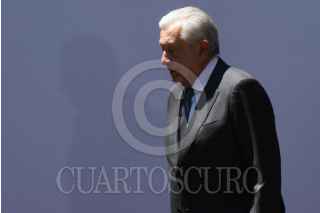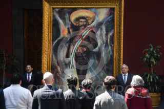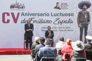 CIUDAD DE MÉXICO, 10ABRIL2024.- Martí Batres, jefe de Gobierno, y Rosa Icela Rodríguez, secretaria de Seguridad y Protección Ciudadana, durante el 105 aniversario luctuoso de Emiliano Zapata en el Patio de Honor del Palacio Nacional. FOTO: MARIO JASSO/CUARTOSCURO.COM