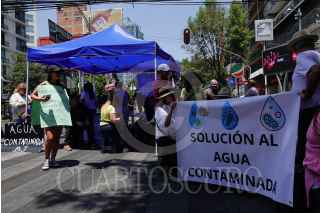 CIUDAD DE MÉXICO, 10ABRIL2024.- Por segundo día consecutivo vecinos de la alcaldía Benito Juárez en específico de la colonia Narvarte cerraron Avenida Insurgentes y su cruce con Ohio esto para exigir a las autoridades se hagan las revisiones pertinentes del agua potable que llega a sus hogares debido a que supuestamente el líquido vital presenta olor a gasolina. FOTOS: ROGELIO MORALES /CUARTOSCURO.COM