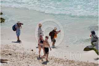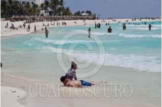 CANCÚN, QUINTANA ROO, 10ABRIL2024.- .Con una visión estratégica hacia el futuro del turismo, la Secretaría de Turismo de Quintana Roo anuncia su participación en el Tianguis Turístico México 2024, el cual se llevará a cabo del 9 al 12 de abril en la ciudad de Acapulco, Guerrero. Este evento marca un momento crucial para el Caribe Mexicano, ya que se presenta como una oportunidad única para fortalecer y ampliar el panorama turístico del estado en el ámbito de los viajes y destinos. En la imagen turistas en Playa Gaviota Azul disfrutan de arenas blancas y el mar turquesa. FOTO: ELIZBETH RUIZ/CUARTOSCURO.COM