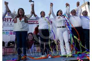 AYALA, MORELOS, 10ABRIL2024.- Claudia Sheinbaum, candidata a la presidencia de la República por la coalición "Sigamos Haciendo Historia" (Morena-PT-PVEM), encabezó un mitin con simpatizantes en la cabecera municipal de Ayala. La candidata estuvo acompañada por Margarita González Saravia, candidata a la gubernatura de la entidad. FOTO: GALO CAÑAS/CUARTOSCURO.COM