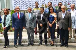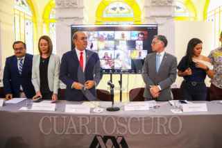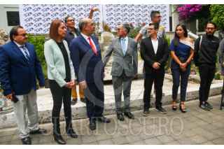 CIUDAD DE MÉXICO. 11ABRIL2024.- El rector de la UAM, José Antonio de los Santos junto con Bruno Hernández en el lanzamiento de la convocatoria del Premio Nacional de Periodismo que se llevó acabo en la Casa del Tiempo de la Universidad Autónoma Metropolitana. FOTO: VICTORIA VALTIERRA/CUARTOSCURO.COM
