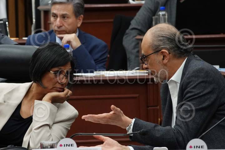 CIUDAD DE MÉXICO, 11ABRIL2024.- Los Consejeros Electorales Norma Irene de la Cruz Magaña y Martín Faz Mora durante la Sesión Ordinaria en el Instituto Nacional Electoral. FOTO: GRACIELA LÓPEZ /CUARTOSCURO.COM