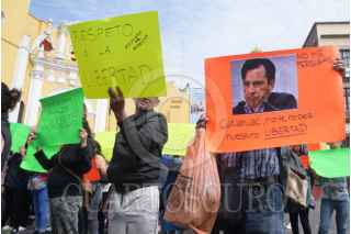 XALAPA, VERACRUZ, 11ABRIL2024.- Los ciudadanos Francisco Jaimes Macedo, Juan Hernández, y Emilio Pulido ofrecieron una conferencia de prensa para negar que ellos hayan señalado de varios delitos a “Itiel”, mejor conocido como el Compa Playa. Informaron en una conferencia de prensa que las supuestas declaraciones que presenta la Fiscalía de Veracruz son testimonios falsos, aunque acotaron que si acudieron a esta instancia para denunciar otros delitos y que en su momento personas de la fiscalía les hizo firmar un documento en blanco, por lo que intuyen que las declaraciones firmadas con sus nombre pertenecen a estas hojas. En el marco del mismo caso personas se manifestaron para pedir la libertad de “Itiel” en la Plaza Lerdo de Tejada, ya que acusan que la fiscalía a fabricados pruebas para mantenerlo preso. El imputado es señalado de asesinar al exdiputado, Juan Carlos Molina Palacios y de otros dos homicidios. FOTO: YERANIA ROLÓN/CUARTOSCURO.COM