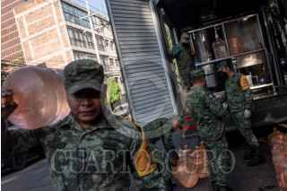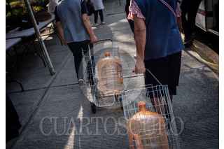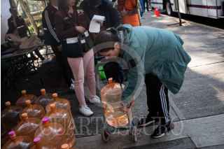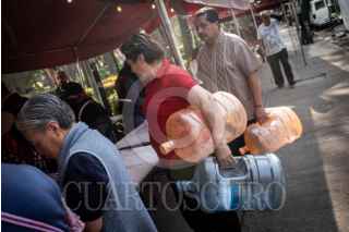 CIUDAD DE MÉXICO, 12ABRIL2024.- Vecinos de la demarcación afectados por la problemática del agua, acuden al Parque San Lorenzo, en la Colonia del Valle, para abastecerse de agua potable de los camiones potabilizados móviles que instaló la SEDENA. FOTO: PÈDRO ANZA /CUARTOSCURO.COM