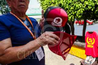 CIUDAD DE MÉXICO. 12ABRIL2025.- Venta de souvenirs en las afueras del Deportivo del IMSS, donde la candidata por la jefatura del Gobierno de la Ciudad, Clara Brugada Molina, por la Coalición Sigamos Haciendo Historia; realizó un evento con Sindicatos de todo el país. FOTO: VICTORIA VALTIERRA/CUARTOSCURO.COM