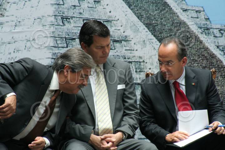 MÉXICO, D.F. 13JULIO2007.- El presidente Felipe Calderón Hinojosa, durante la cremonia de cancelación del timbre postal de Chichén Itzá. FOTO: PAOLA HIDALGO/CUARTOSCURO.COM