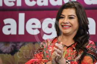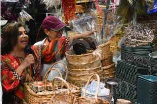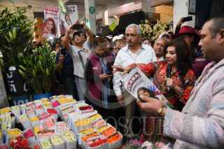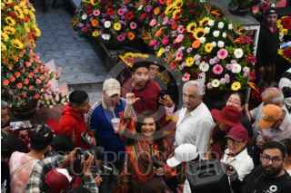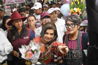 CIUDAD DE MÉXICO, 13ABRIL2024.- Clara Brugada, candidata a la Jefatura de Gobierno por la coalición Sigamos Haciendo Historia, encabezó un recorrido en el mercado de Jamaica para compartir sus propuestas de campaña con locatarios del lugar. FOTO: MARIO JASSO/CUARTOSCURO.COM