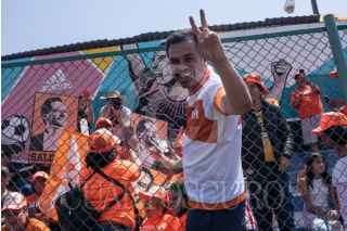 CIUDAD DE MÉXICO, 13ABRIL2024.- Jorge Álvarez Máynez, candidato a la presidencia de la República por parte de Movimiento Ciudadano, durante un recorrido por las calles de Tepito, donde a su vez jugó un partido de fútbol en el Deportivo Maracaná. FOTO: PEDRO ANZA /CUARTOSCURO.COM
