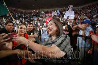 CIUDAD JUÁREZ, CHIHUAHUA, 13ABRIIL2024.- Xóchitl Gálvez, candidata a la presidencia por la alianza Fuerza y Corazón por México (PAN-PRI-PRD), encabezó un mitin con simpatizantes de la entidad. FOTO: REY R. JAUREGUI/CUARTOSCURO.COM